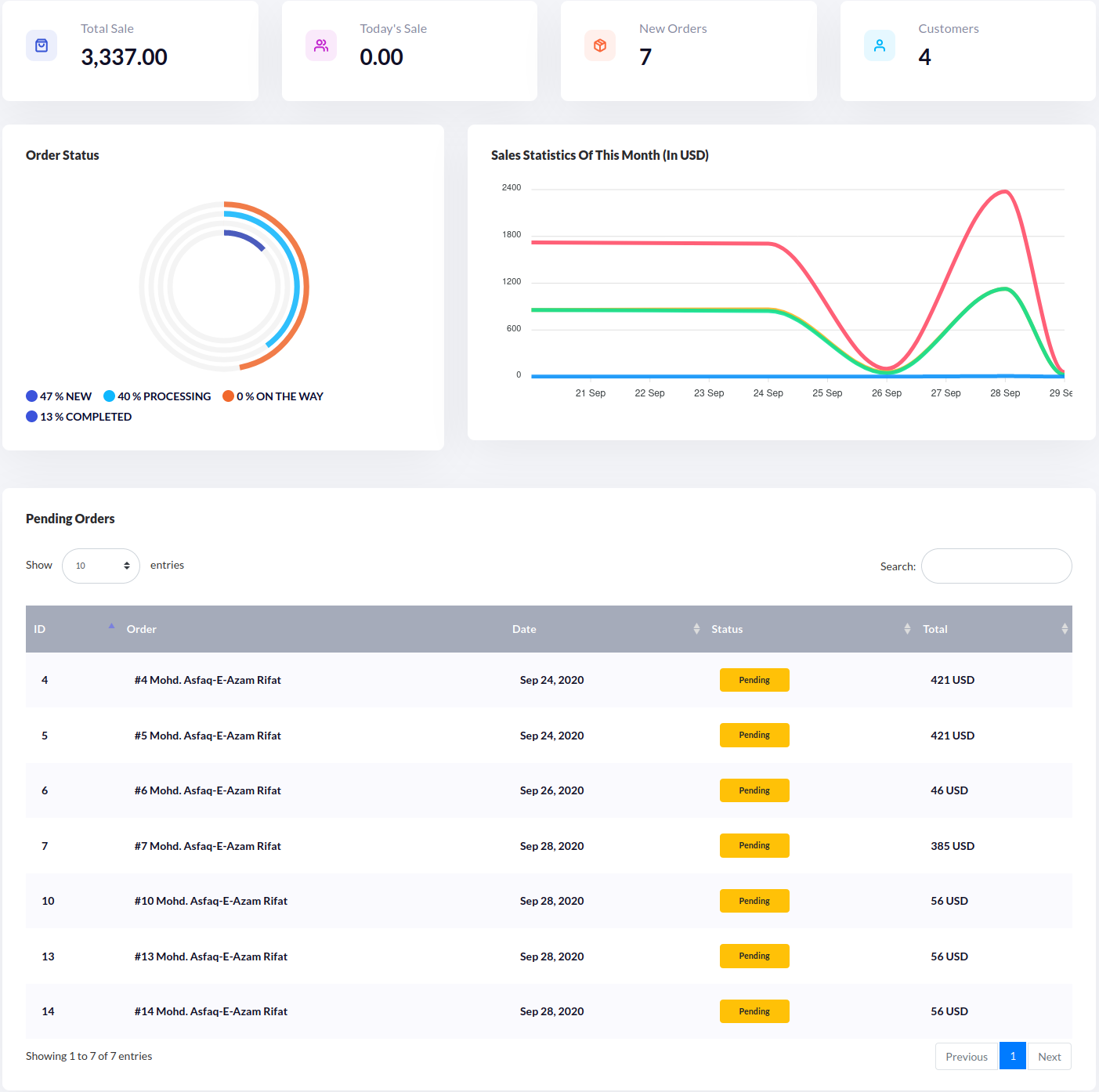 After log into your staff dashboard, you should see bellow screen where you will find various statistics of your Azzoa e-commerce. Interactive sales charts can help you to keep an eye on your e-commerce growth and research.