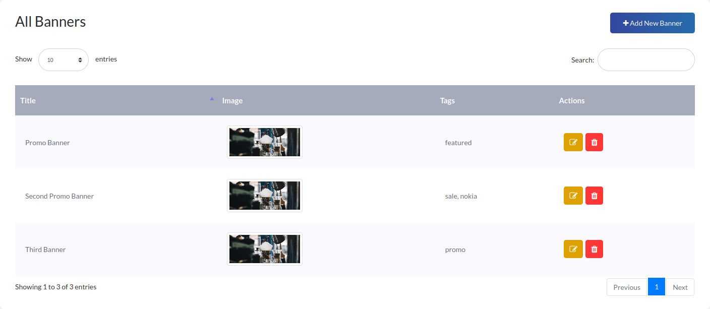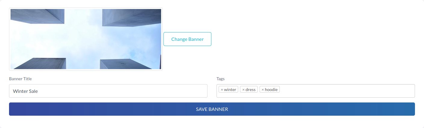 To add a new banner, click on Add New Banner button. Enter title, select banner image and add some tags. That banner will show those products related by tags. So, careful about tags.